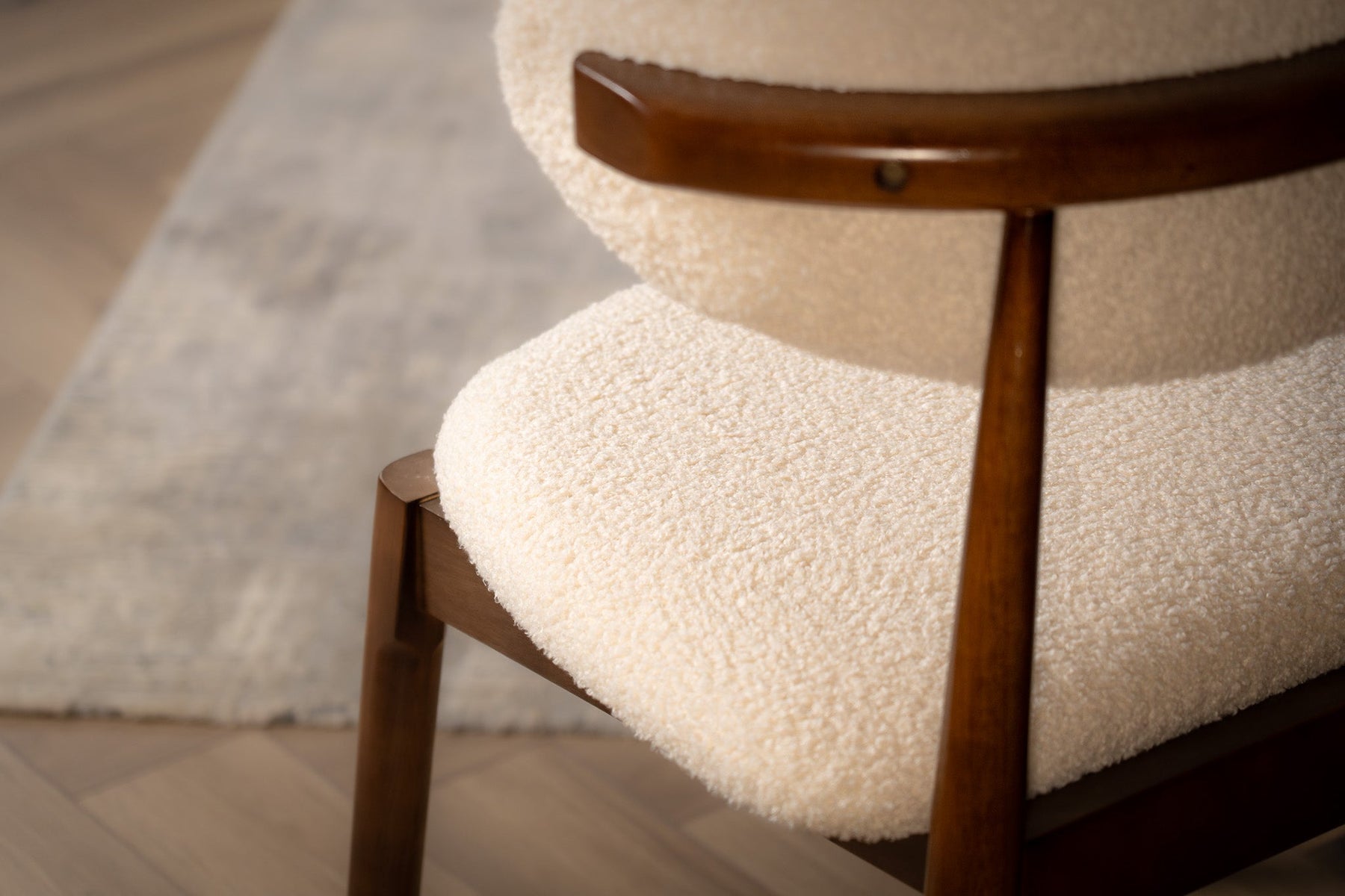 This chair can be placed around a dining table or used as an occasional chair in living spaces. It is intended for indoor use on level surfaces to ensure stability and proper function.